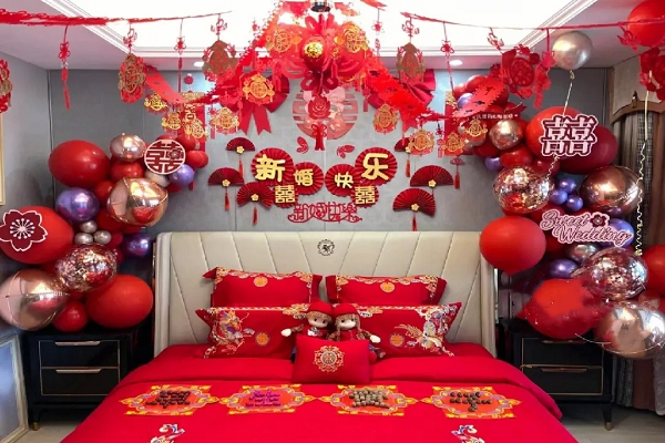 这个时候就需要一些简单的拉花来修饰啦,还能提高整个婚房的温馨感哦。